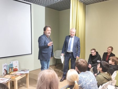 В городской детской библиотеке им. Е. С. Коковина председатель Правления Группы Аквилон Александр Фролов и известный архангельский художник Дмитрий Трубин передали представителям администрации столицы Поморья более 200 новых книг. Мероприятие прошло в рамках Года культуры Русского Севера.