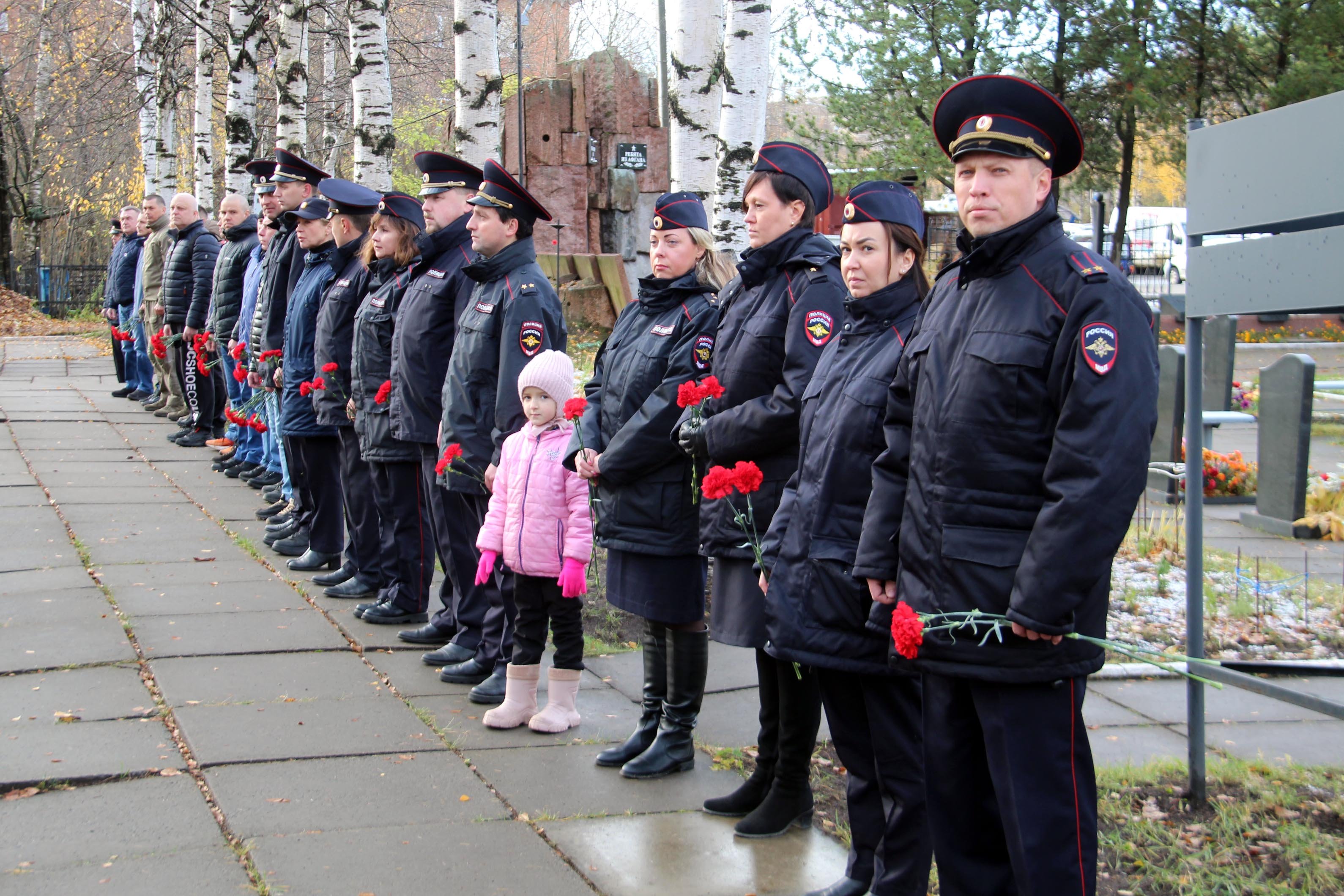Сегодня на воинском мемориале Вологодского кладбища врио заместителя начальника УМВД России по Архангельской области полковник полиции Дмитрий Беляков, председатель Совета Архангельской региональной общественной организации ветеранов органов внутренних дел Николай Вакорин, сотрудники областного и городского Управлений МВД, а также родные и близкие почтили память погибших стражей порядка и возложили цветы к их могилам.