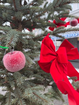 В новом сквере "Три берёзы" активисты школы № 9 украсили новогоднюю елочку. Для оформления выбрали экологичную и символичную тему «Яблочки» .