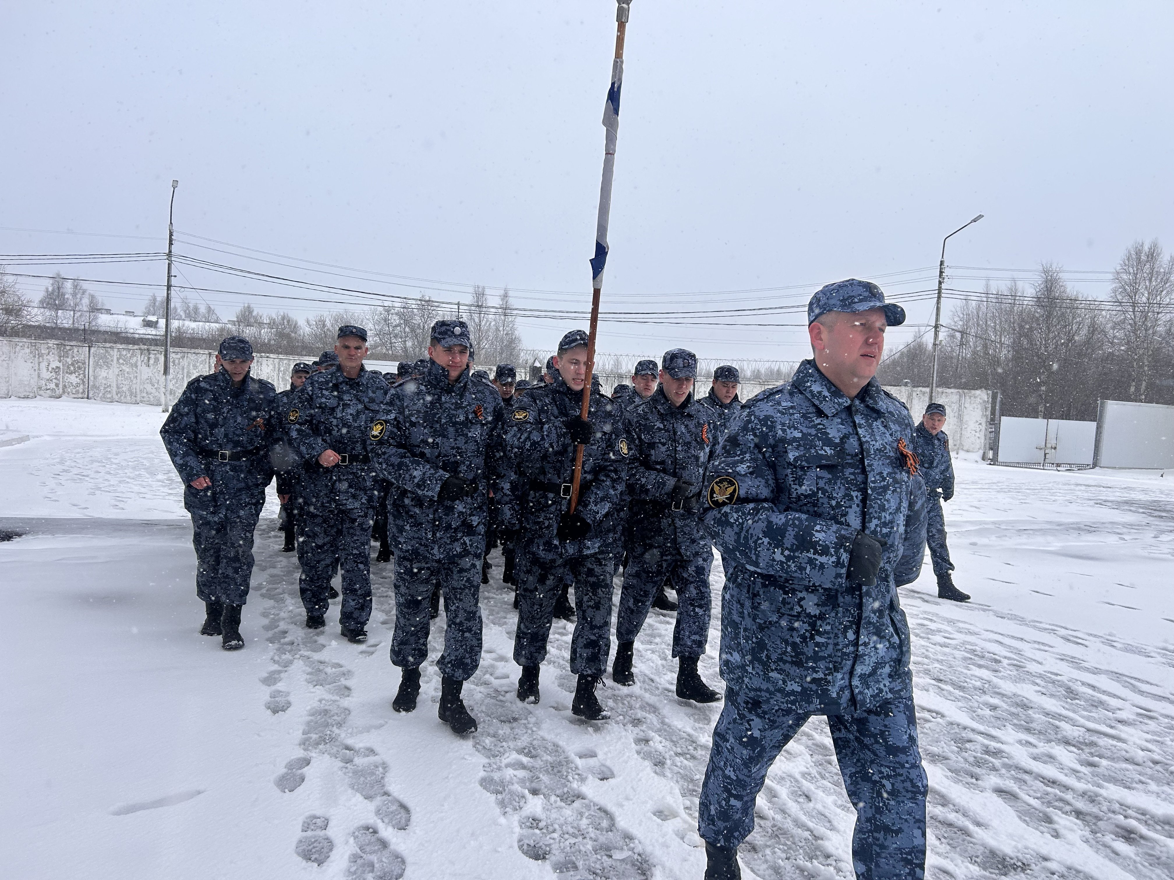 В столице Поморья идет подготовка парадного расчета УФСИН России по Архангельской области к торжественному шествию в честь Дня Великой Победы. Тренировки организованы на базе Управления по конвоированию.