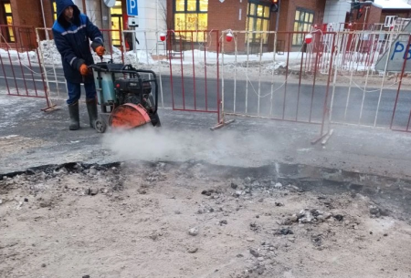 Сегодня начался этап укладки бетонного покрытия - бригада приступила к монтажу бетонных дорожных плит. «Работа начинается с точной разметки и аккуратной вырезки старого асфальта по контуру будущих плит с помощью специального оборудования. Это необходимо для создания чёткого и ровного края, чтобы новое покрытие легло вровень с существующим, без перепадов высот и потенциальных «ступенек», - объяснил мастер цеха строительства сетей РВК-Архангельск Марк Бодухин.