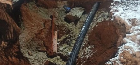«Реальность нас удивила. Вместо указанной на картах чугунной трубы диаметром 200 мм мы обнаружили пластиковую, но абсолютно не предназначенную для укладки в землю. Это были трубы для внутренней разводки канализации внутри зданий – более тонкостенные и хрупкие. Они не рассчитаны на давление грунта и внешние нагрузки. Один такой участок под весом земли просто сложился, как карточный домик. Получается, что почти четыре десятилетия стоки от медицинского учреждения отводились по трубе, которая изначально не должна была находиться в этой среде. Это и объясняло хронические проблемы», - рассказал мастер цеха канализационной сети РВК-Архангельск Кирилл Макурин.