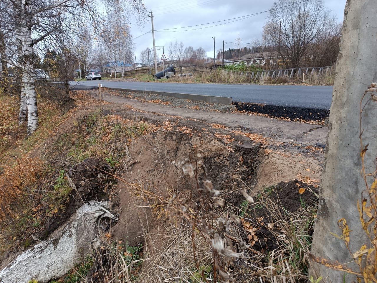 -не закончены работы по водоотводу от федеральной трассы, минуя коттеджи по ул. Виледской в сторону р. Виледь, происходит заболачивание почвы.