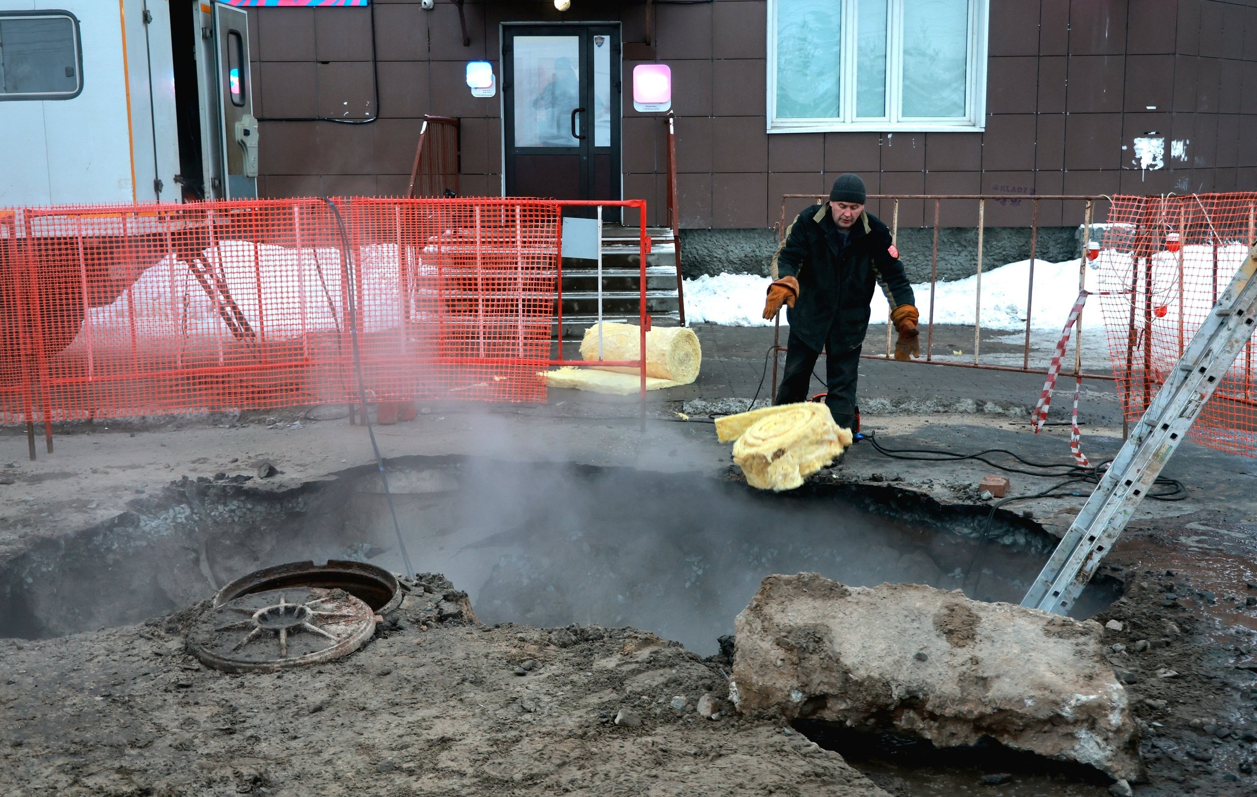 - На 15 часов к работе приступило монтажное звено ТГК-2. Место повреждения магистрали определено: из-за подвижки грунта труба разошлась по шву. Врезка участка не требуется, только сварка.