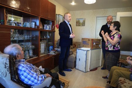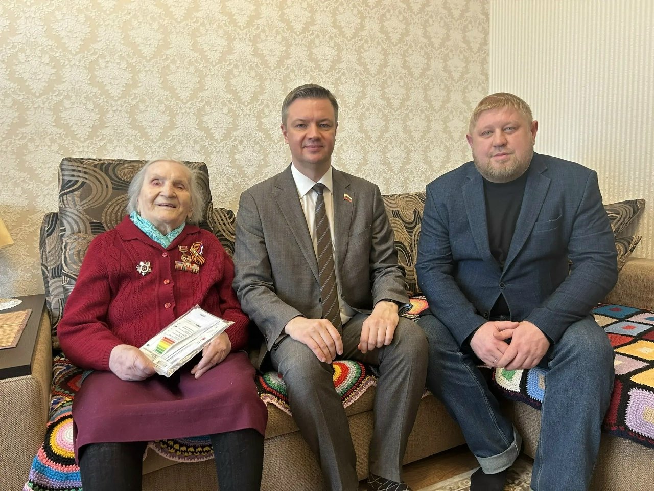 С почетной миссией к 101-летней участнице войны Анне Шубиной приехали депутаты Сергей Сорокин и Алексей Бельков. Для Анны Михайловны визит парламентариев ознаменовался появлением в квартире долгожданного нового холодильника.