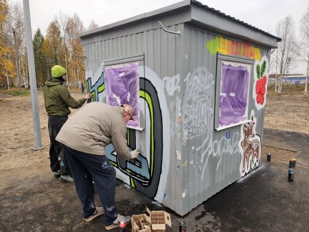 Несмотря на неприятные инциденты, инициаторы скейт-парка не намерены останавливаться на достигнутом. Недавно уличный художник Александр Волков вместе со своим товарищем украсили бытовку ярким граффити, создав атмосферу творчества и позитива. Напомним, что на поверхности этой бытовки можно официально размещать свои стикеры.
