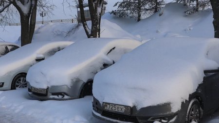 Оккупированная парковка мешает не только встречающим и провожающим, но и коммунальщикам, пытающимся расчистить снег.